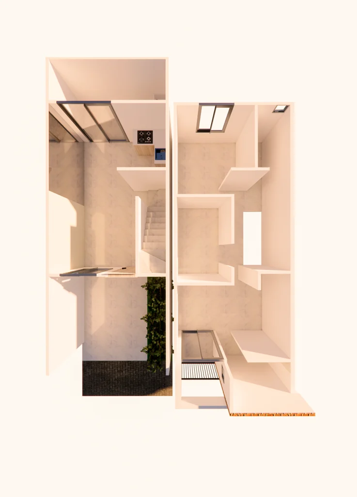 63 m² de área construida. Cuenta con 2 niveles, 3 alcobas, 2 baños, sala comedor, cocina y patio.
